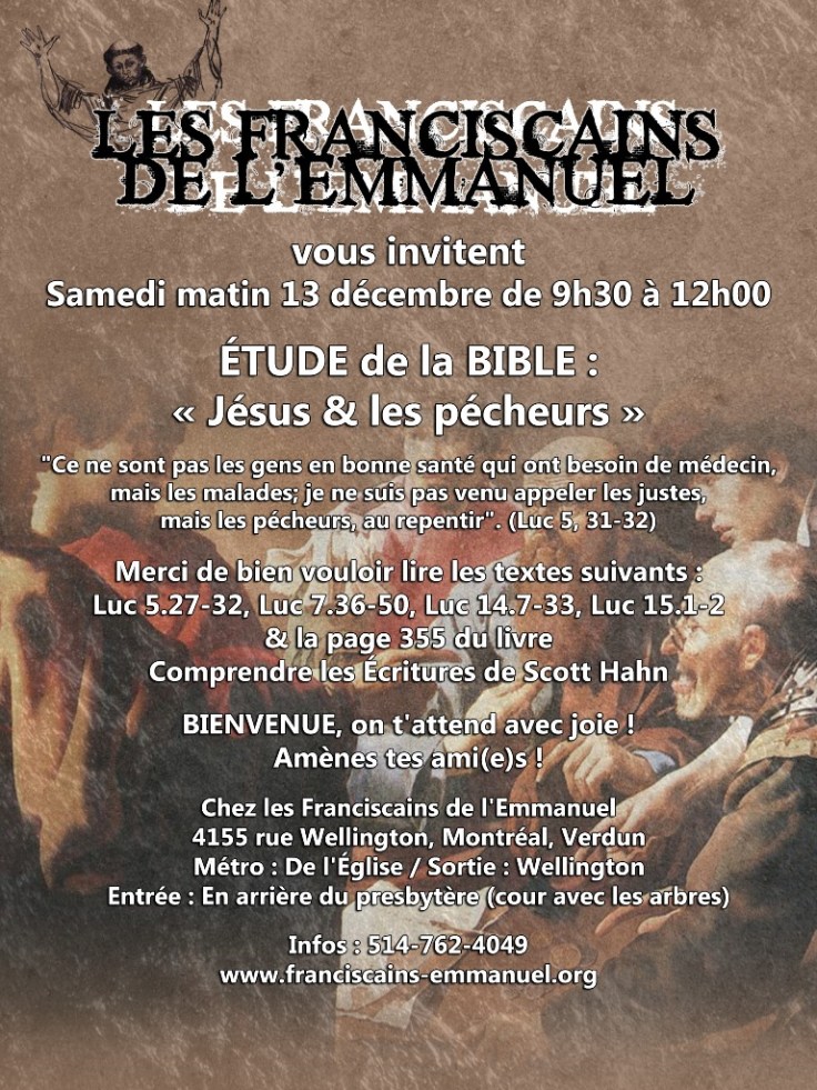 Samedi matin, cours bibliques! Partager :TweetJ’aime chargement… Similaire Laisser un commentaire Annuler la réponse. Δ