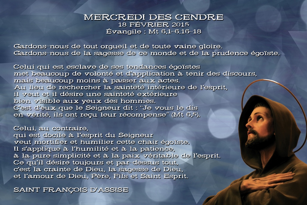 Ces quelques paroles du père séraphique pourront se greffer à ta préparation intérieure. Ainsi tu pourras arriver à Pâques avec les mains ouvertes et recevoir du Seigneur Jésus Christ toutes les grâces qui jaillissent du don de sa vie sur la croix.