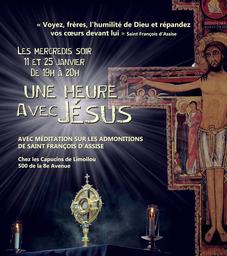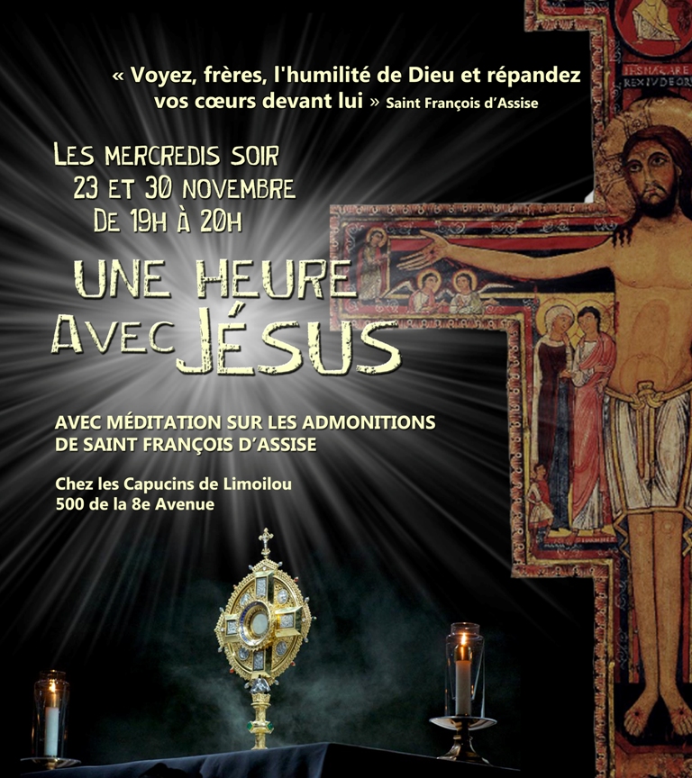 Les soirées d’adoration eucharistique chez les Capucins de Limoilou se tiendront désormais les mercredis soir (sauf lorsqu’il y a la Messe des Jeunes à St-Fidèle).