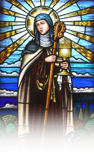 Ce témoin1 dit aussi qu’une fois où elle avait entendu chanter après Pâques J’ai vu de l’eau sortant du temple par son côté droit2, ladite sainte mère dame Claire s’en réjouit tant et se le tint tant présent à l’esprit que toujours, après manger et après complies3, elle se faisait donner à elle et à ses sœurs l’eau bénite. Elle disait à ses sœurs : «Mes sœurs et filles, toujours vous devez vous rappeler et garder en votre mémoire cette eau bénie4, qui sortit du côté droit de notre Seigneur Jésus Christ pendant en croix.»
