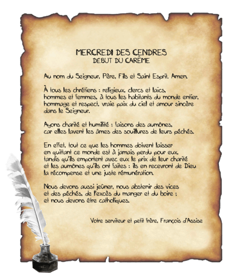 – Mercredi des Cendre = Lettre aux fidèles