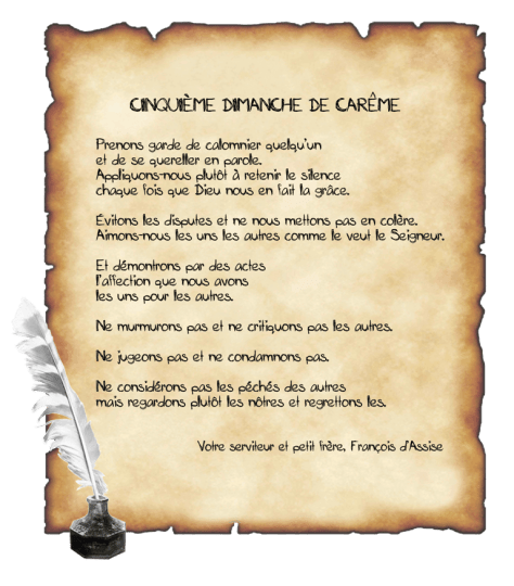 – Cinquième Dimanche de Carême = Règle et vie des frères