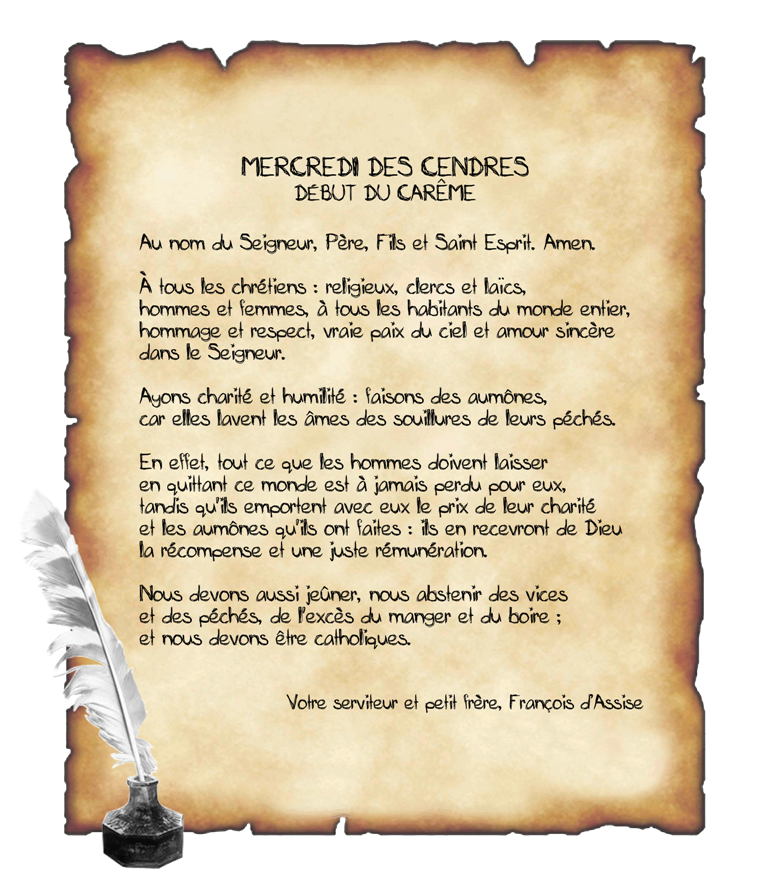 – Mercredi des Cendre = Lettre aux fidèles