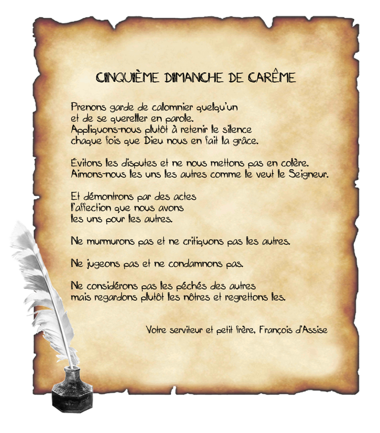 – Cinquième Dimanche de Carême = Règle et vie des frères